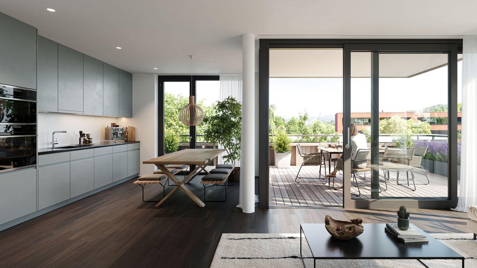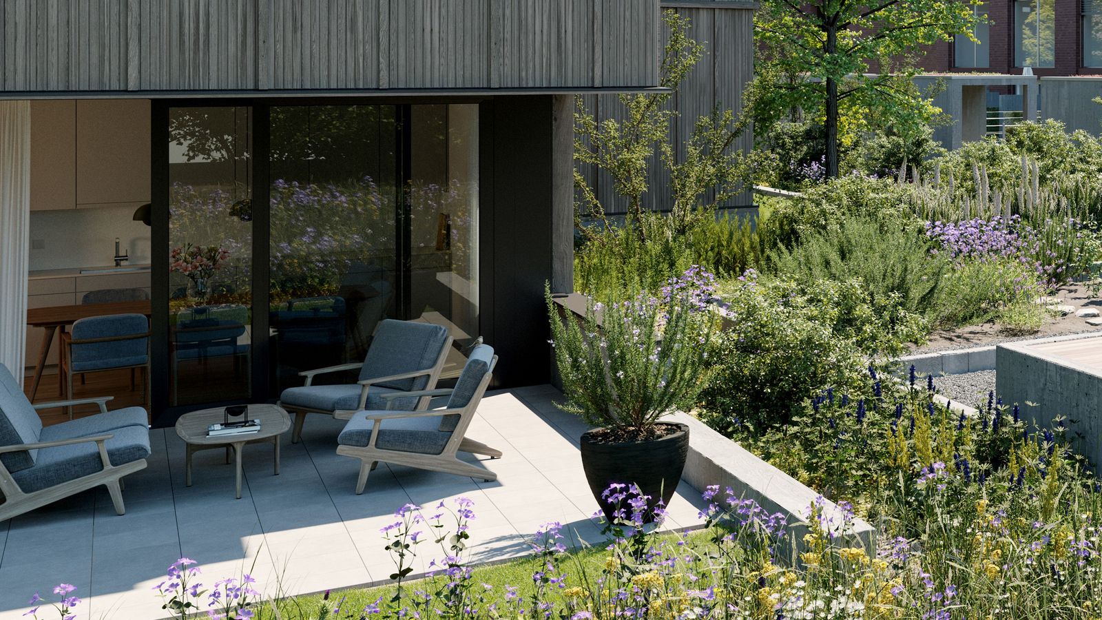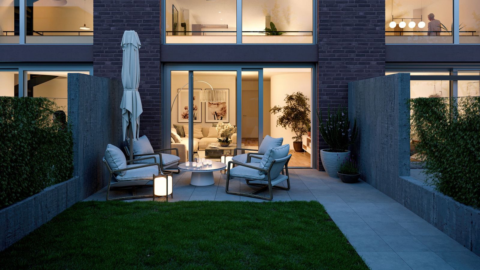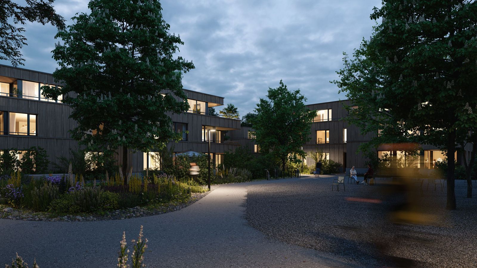 Wohneigentum mitten in Riehen – Mit der Überbauung Hinter Gärten in Riehen hat das renommierte Büro Morger Partner Architekten ein Musterbeispiel für stadtnahes, zeitgenössisches Wohnen im Einklang mit der Natur entworfen. Entlang des Bäumliwegs wurden 10 Reiheneinfamilienhäuser gebaut, den Abschluss zur Inzlingerstrasse bildet ein Zeilenbau mit 23 Wohnungen und dazwischen verteilen sich 3 Punkthäuser mit je 8 Wohnungen im grünen Innenhof. Das spannende architektonische Ensemble erinnert an die frühere Baumschule auf dem Gelände. hintergaerten-wohnen.ch